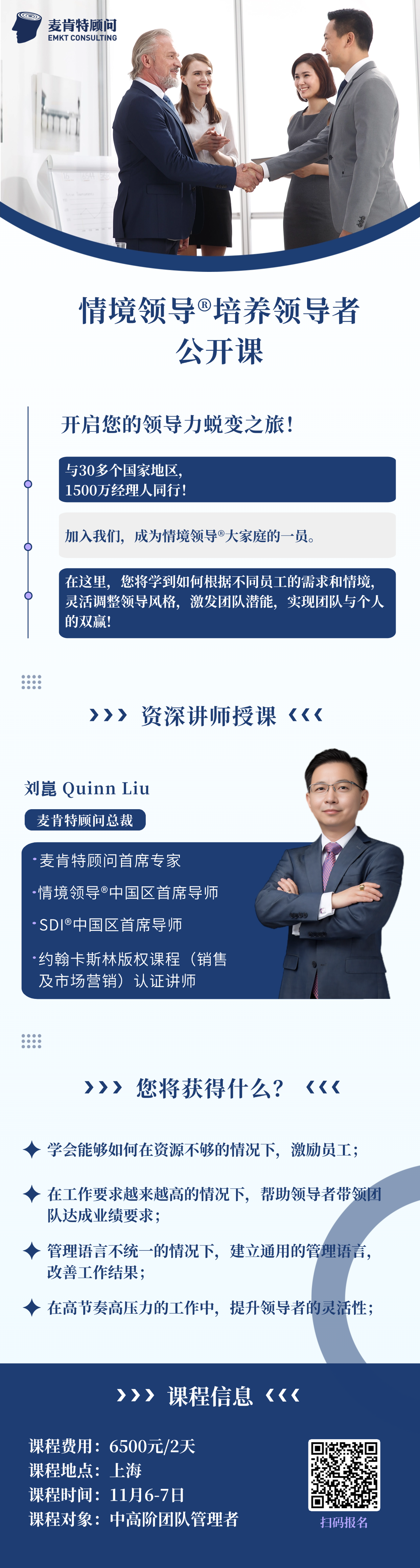 【11月6-7日 上海】情境领导®-培养领导者公开课